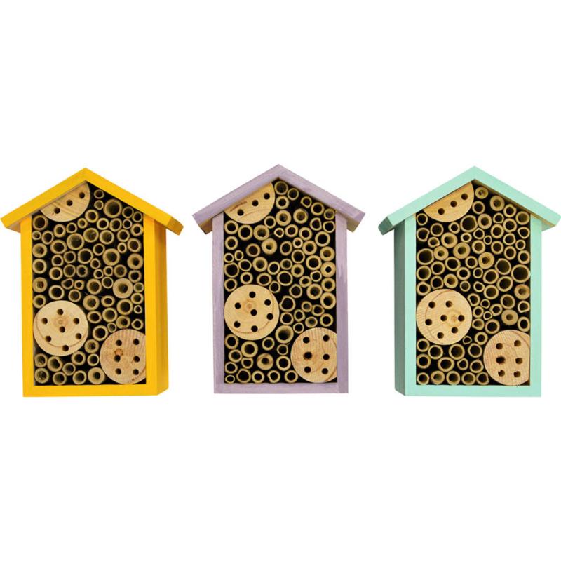 | Improve the health and performance of plants naturally with this pollinator house! Gentle solitary bees are capable of pollinating up to 20 times the amount of flowers as honey bees. This house provides these power pollinators with the perfect place to lay their eggs, which ensures that you have these helpers around for years to come! A pollinator house is a great tool for anyone wanting to improve plant health and performance without the use of harmful chemicals. Attracts Leaf Cutter Bees, Mason Bees and more! Easy-mount hanger. Colors: Yellow, Tan, Green. |