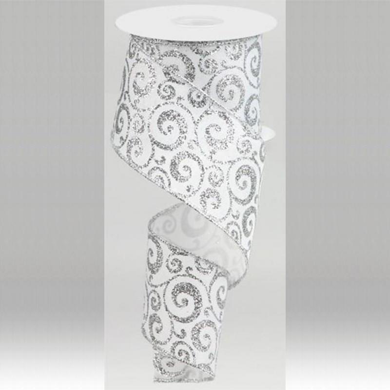 Silver Theme Ribbon White / Silver Glitter Swirl #40