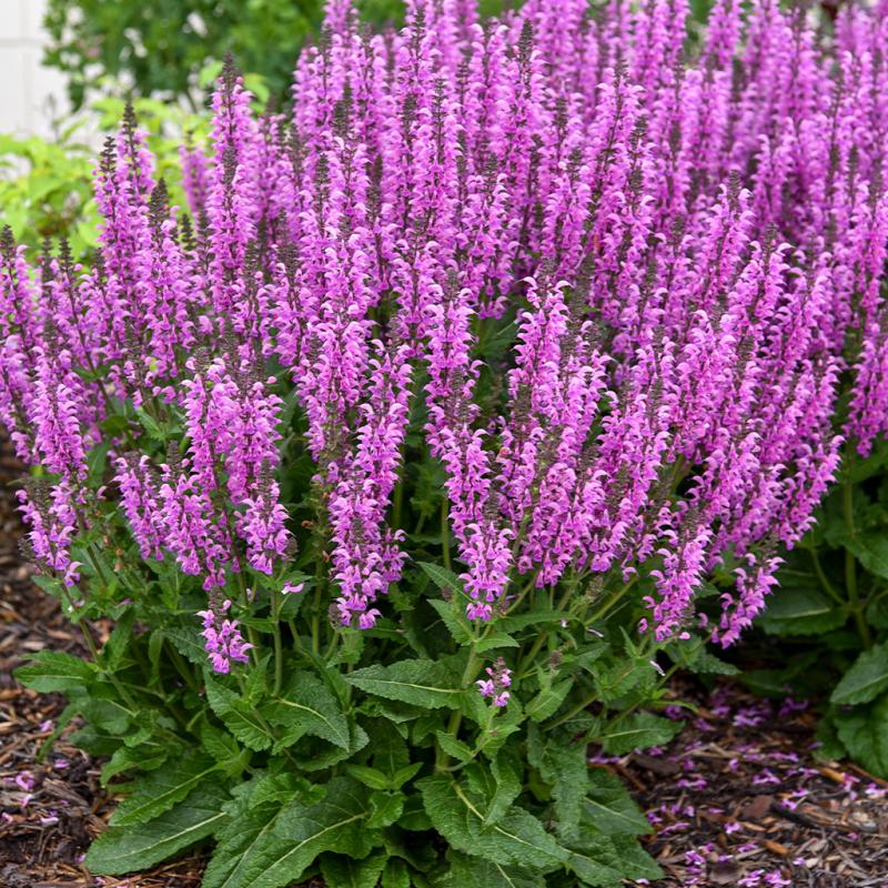 | The darkest pink of the COLOR SPIRES® Collection, this variety produces fuchsia pink flowers on dark charcoal stems. Flowers are produced prolifically above a canopy of dark green leaves—a cross between S. nemorosa and S. pratensis. I will rebloom if sheered back. Salvia is a staple for every sunny garden. It requires little more than sunshine and a little water occasionally to produce a bountiful mass of colorful flower spires from late spring into early summer. |