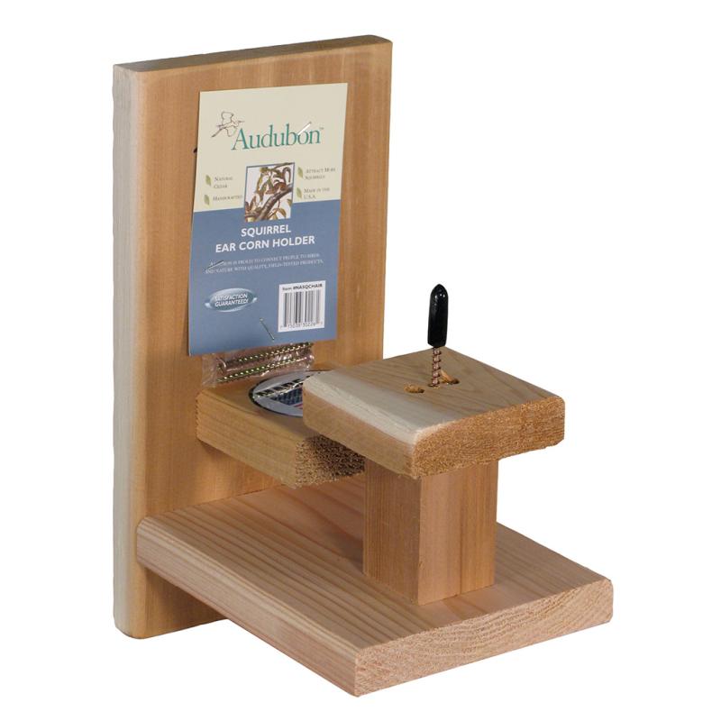 | The Squirrel Ear of Corn Holder is great entertainment and ideal for distracting squirrels from your bird feeders. Easy to use and clean. Holds 1 ear of corn. 10" H x 7.25' W x 5.25" D. Made in the U.S.A. |