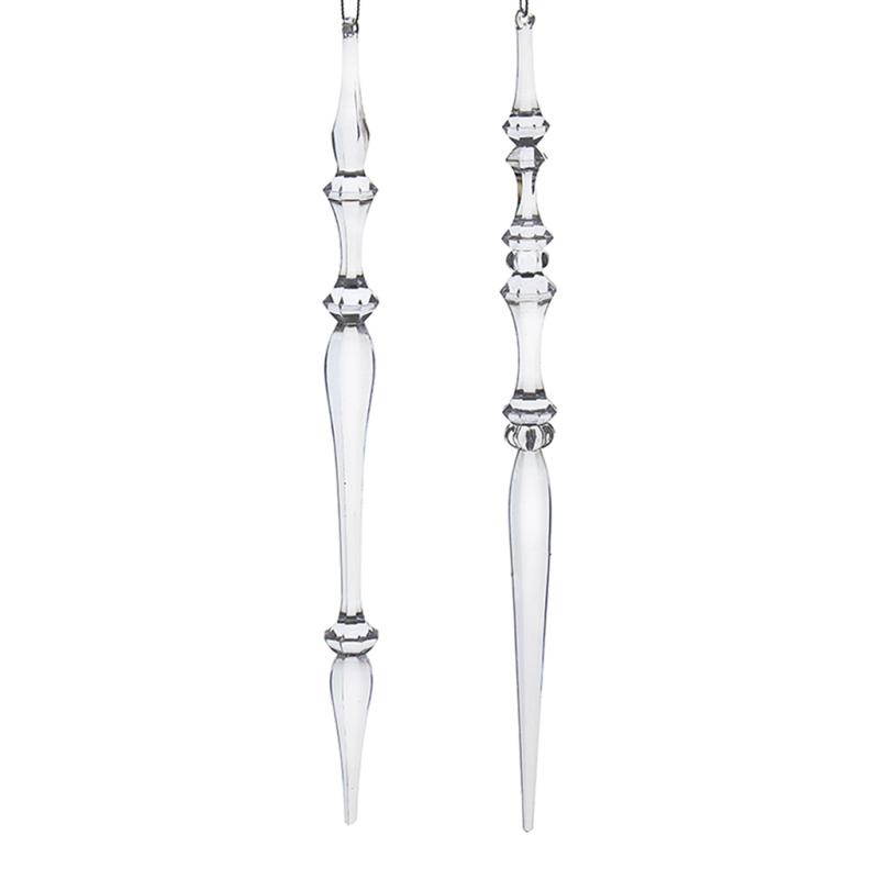These clear, three-dimensional icicle ornaments from Kurt Adler are a festive addition to any holiday décor or Christmas tree. This assortment features two icicle ornaments, each with a distinct style.