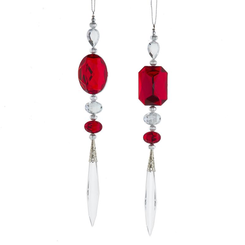| These Red & Clear Gemstone jewels with Dangle Ornaments from Kurt Adler are a stunning and elegant addition to your holiday decor that combines the decadent allure of red and the timeless charm of clear gemstones in two assorted designs. These ornaments are perfect for infusing your holiday decor with luxury, sophistication, and the graceful beauty of dangling gemstones. Each of these exquisite jewel-shaped ornaments features a red and clear gemstone design adorned with delicate dangle elements that capture and reflect the glow of your holiday lights. Crafted with precision and attention to detail, these ornaments are made from high-quality materials that capture the essence of festive beauty, creating a delightful addition to your holiday decorations. Celebrate the magic of the holidays and the joy of festive celebrations with our Red & Clear Gemstone Jewel With Dangle Ornaments. Let them symbolize the festive atmosphere and the timeless elegance of red and gemstones during the holidays, and create cherished holiday memories with these versatile additions to your Christmas decorations. |