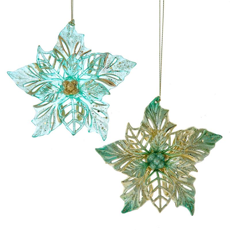 Kurt Adler Ornament Aqua/Gold Poinsettia Ornament