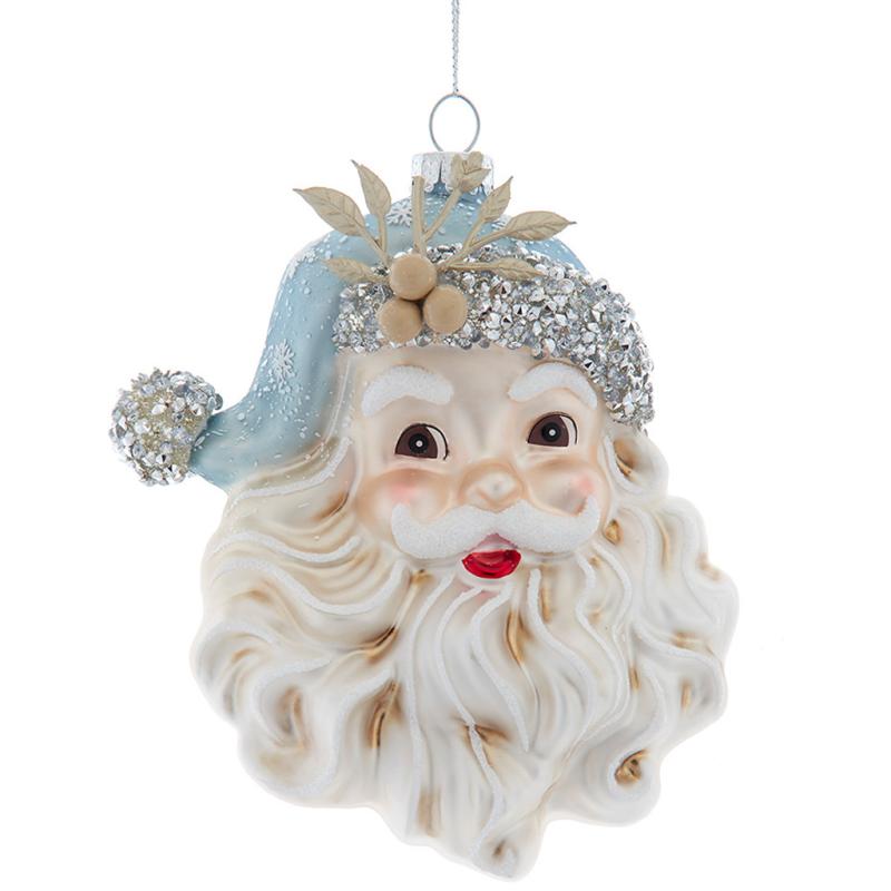 Kurt Adler Ornament Blue/Platinum Santa Head Ornament