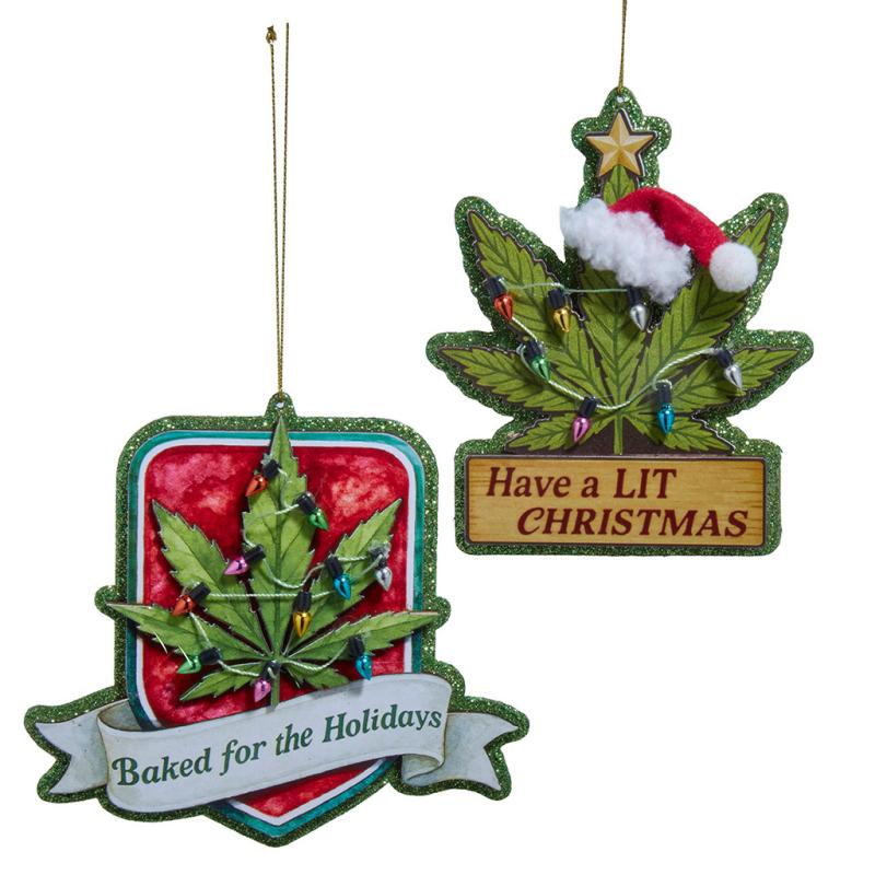 Kurt Adler Ornaments Cannabis Leaf w/Banner