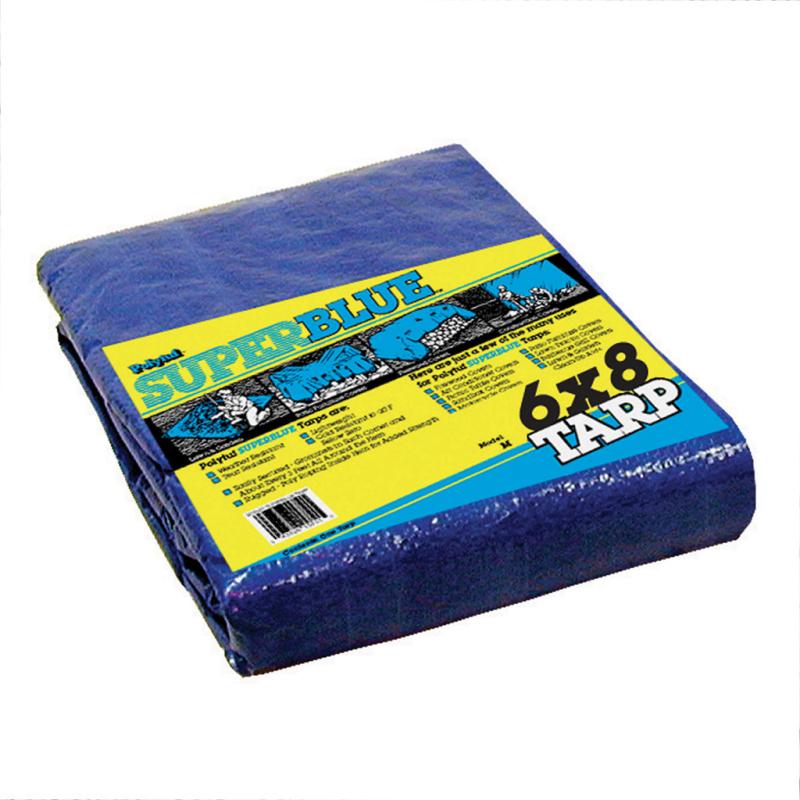 | Super Blue Tarp is the ideal high volume tarp. Super Blue has become the preferred choice because of its low cost and convenience. Construction features include 2.3 ounce per square yard, 8 x 8 sq. in. count, with heat sealed seams and 3/16"bolt roping in hem. Aluminium rust proof grommets about every three feet around the hem, 5-6 mil thickness with UV resistant top and bottom. Blue on both sides. |