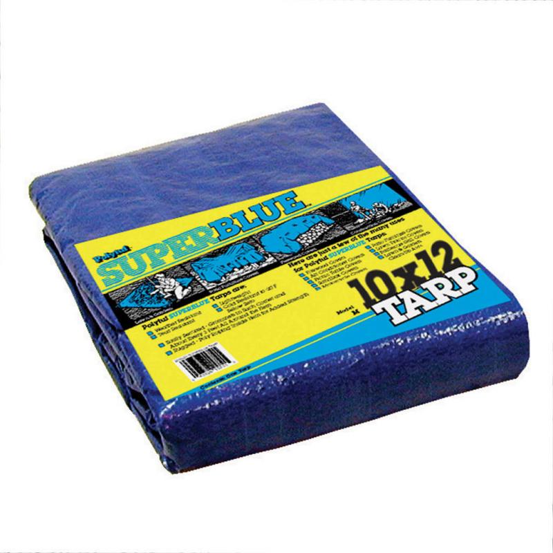 | Super Blue Tarp is the ideal high volume tarp. Super Blue has become the preferred choice because of its low cost and convenience. Construction features include 2.3 ounce per square yard, 8 x 8 sq. in. count, with heat sealed seams and 3/16"bolt roping in hem. Aluminium rust proof grommets about every three feet around the hem, 5-6 mil thickness with UV resistant top and bottom. Blue on both sides. |