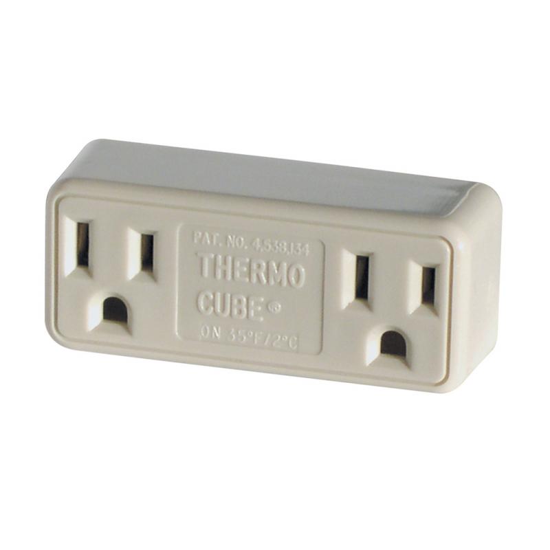 Thermocube works automatically to turn power on and off according to ambient air temperature. Use with pond deicers or heaters for greenhouses. Saves money by operating heaters only when temperatures require.