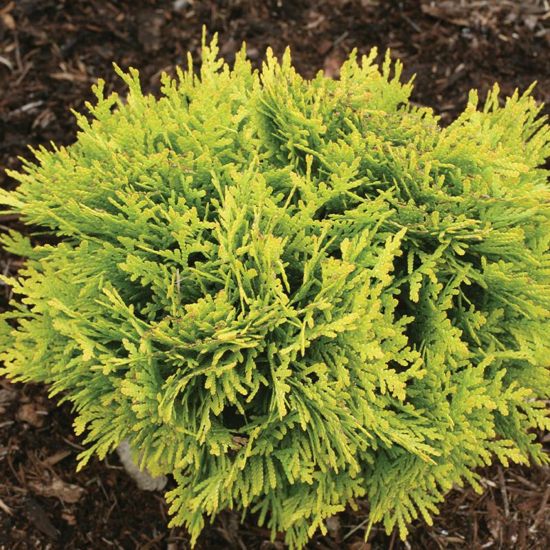 | Anna's Magic Ball® arborvitae is a cute little sphere of cheerful yellow foliage. It was developed in Canada, so this little plant isn't bothered by winter weather and holds its color all year round. This nifty little native evergreen needs no pruning to keep its tight, rounded shape and makes a nice addition to perennial beds, rock gardens, troughs and containers, or any landscape project. Its petite size and well-behaved manner make it an especially nice choice for smaller yards and gardens. |