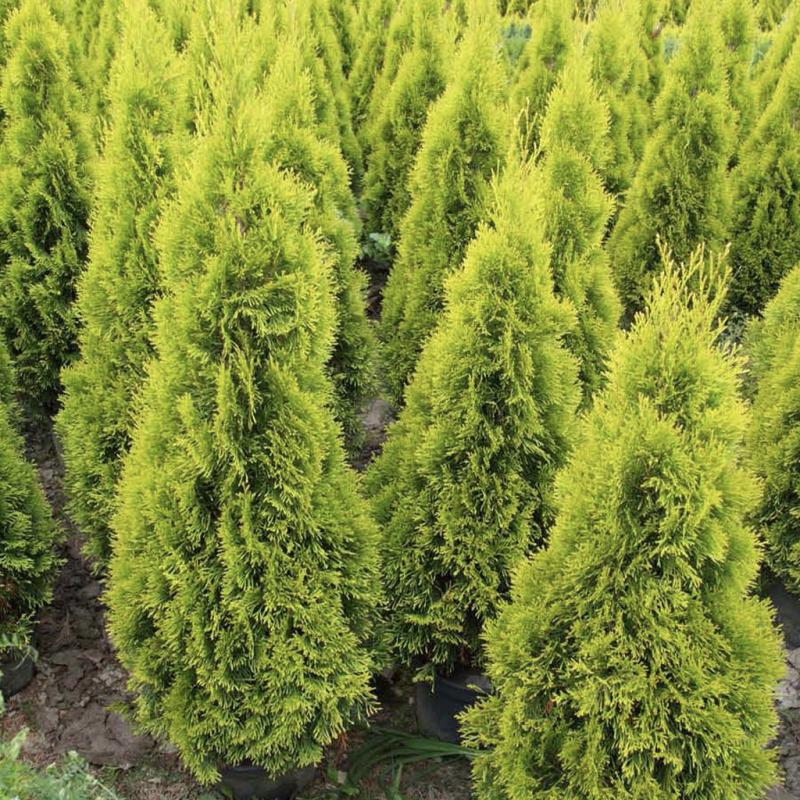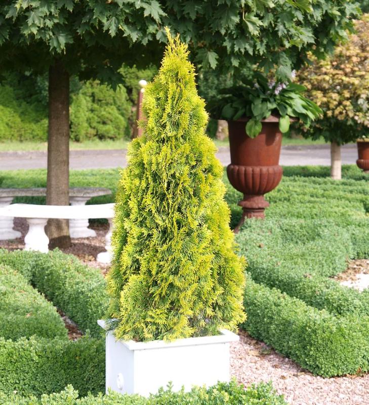 | A nearly perfectly globe-shaped shrub with delicate, bright gold spring foliage and fantastic deep red fall color, this sport of the popular Rheingold has a deeper color and is less prone to splitting. It is a slow-growing, low-maintenance evergreen perfect for massing in a landscape foundation or as a rock garden specimen. |