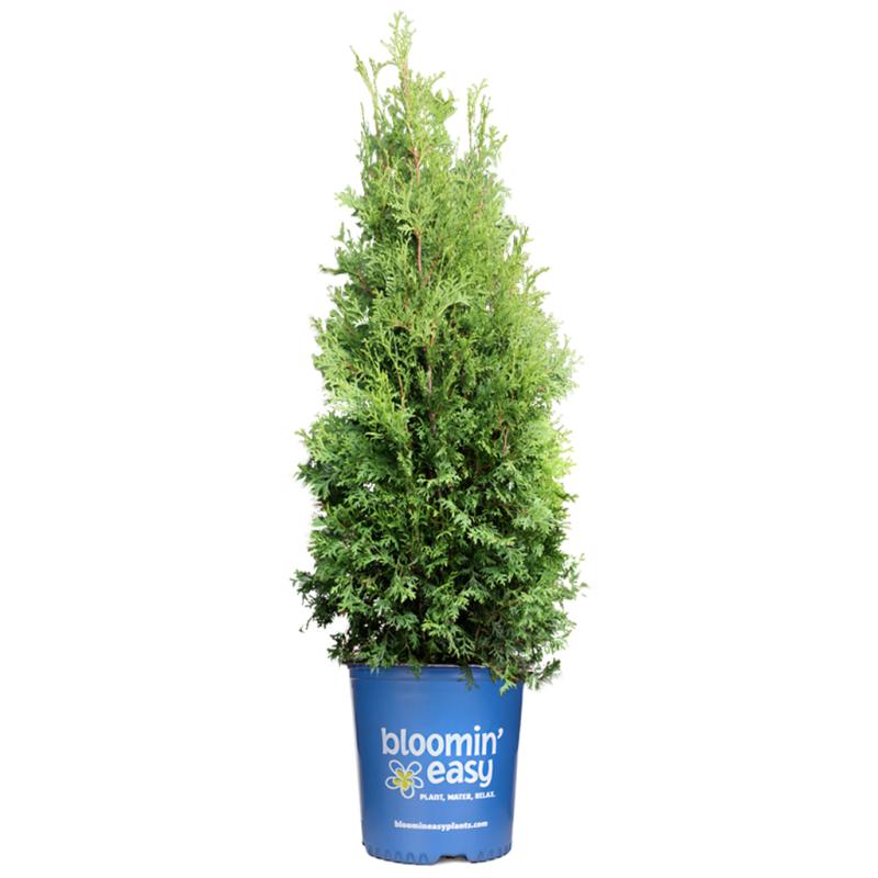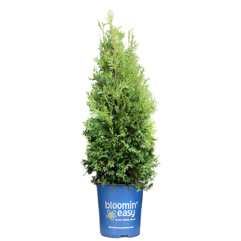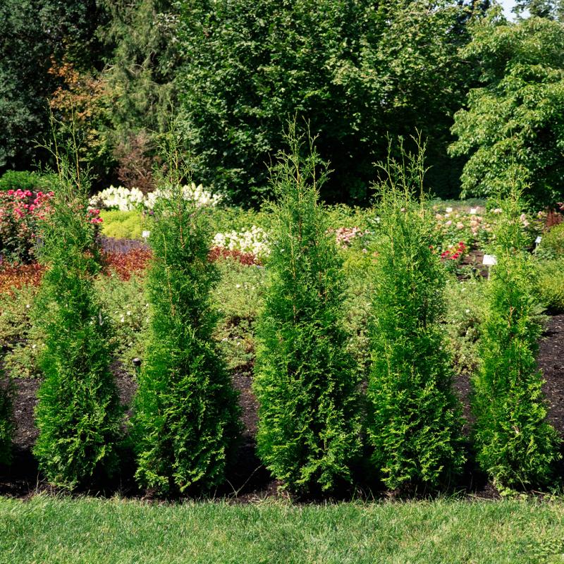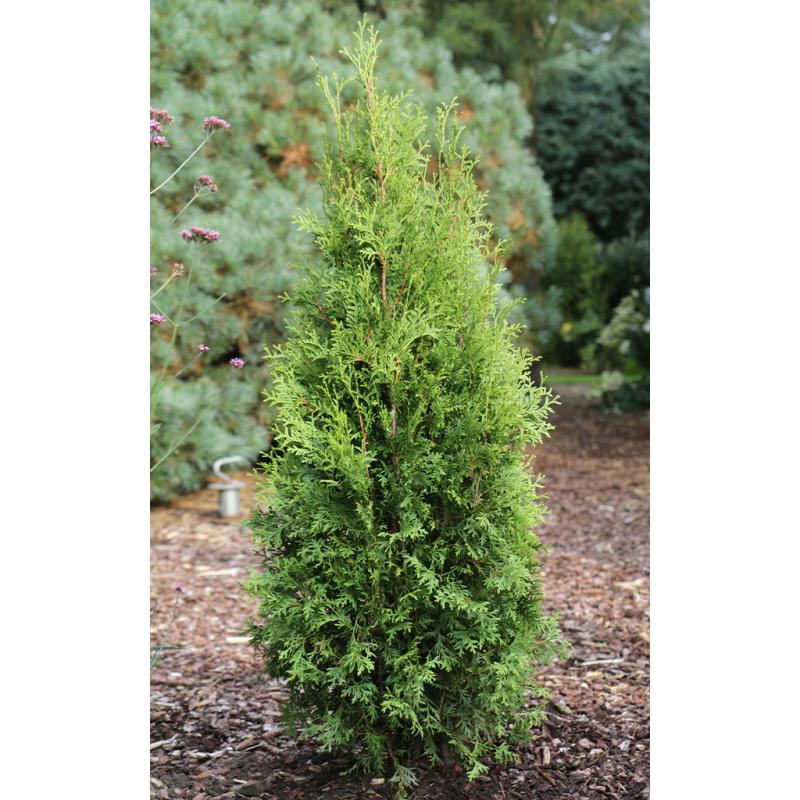 This plant's calling cards are rapid growth and an upright, narrow habit. Deep green, fan-like foliage covers firmly upright branching, creating a dense, almost pillar-like evergreen perfect for screening in narrow areas.