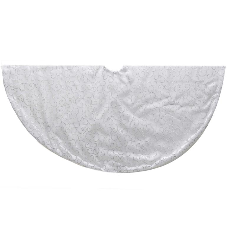 Add some shimmer to any holiday décor or Christmas tree with this silver glitter swirl tree skirt from Kurt Adler. This tree skirt features a white base embellished with intricate silver swirl designs.