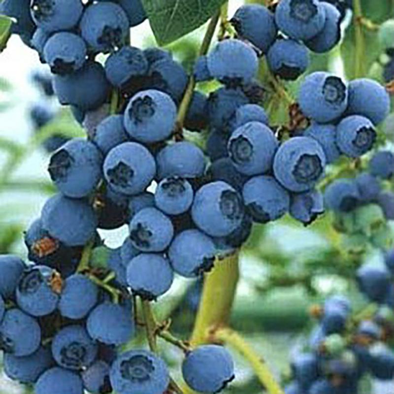 Description: Mid-season blueberry. A heavy producer of high quality large, powder-blue berries with outstanding dessert flavor. The beautiful rose-pink flowers turn bright white in full bloom. Foliage turns a burgundy color in the fall. Does exceptionally well in areas with hot summer or very cold winters—upright and open growing habit.