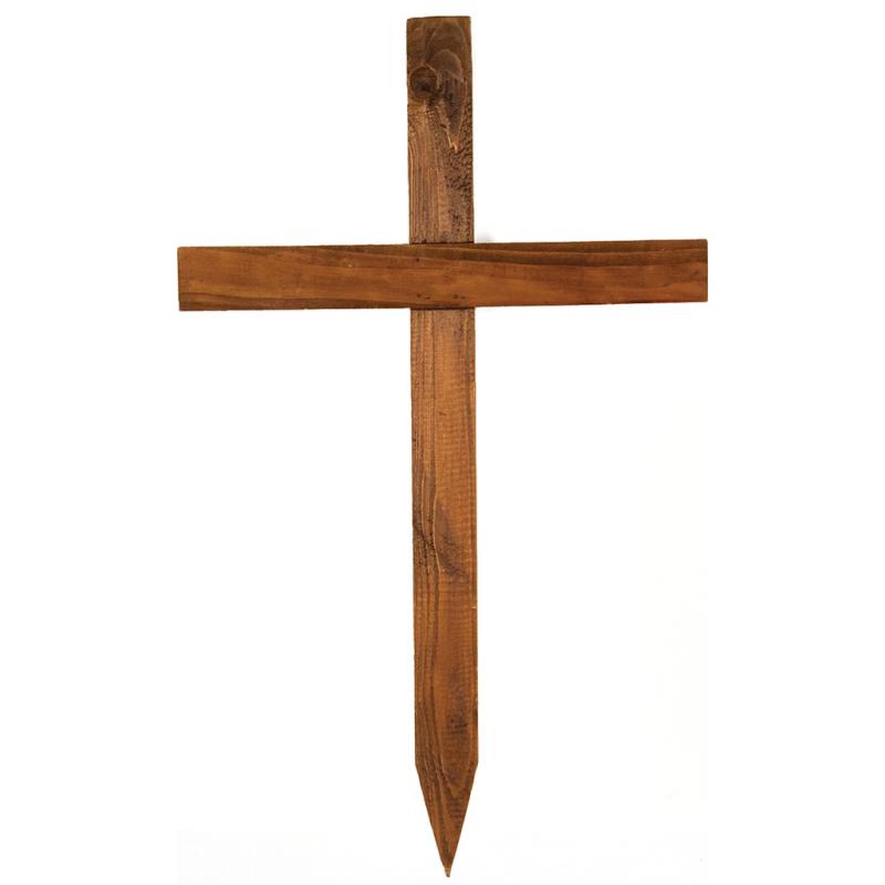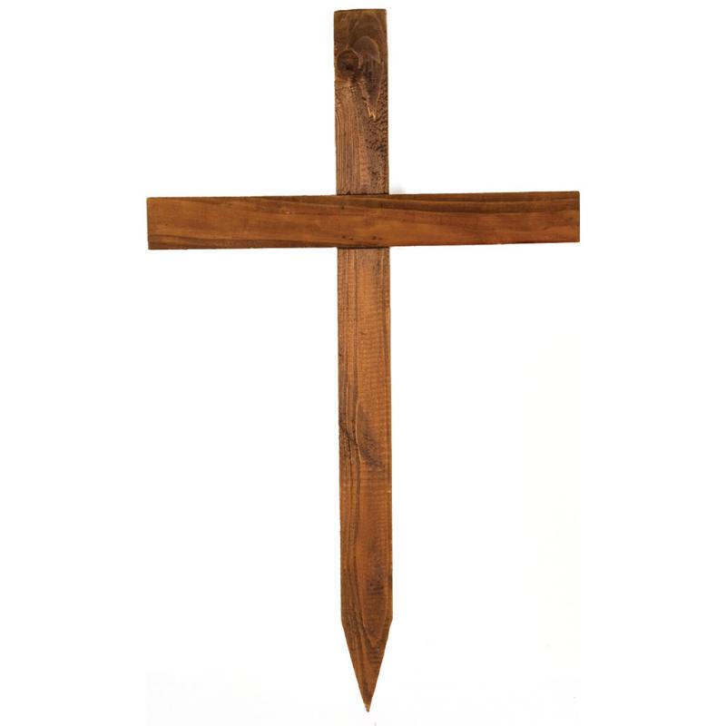 This wooden cemetery cross is a 24” has a wood stain color.