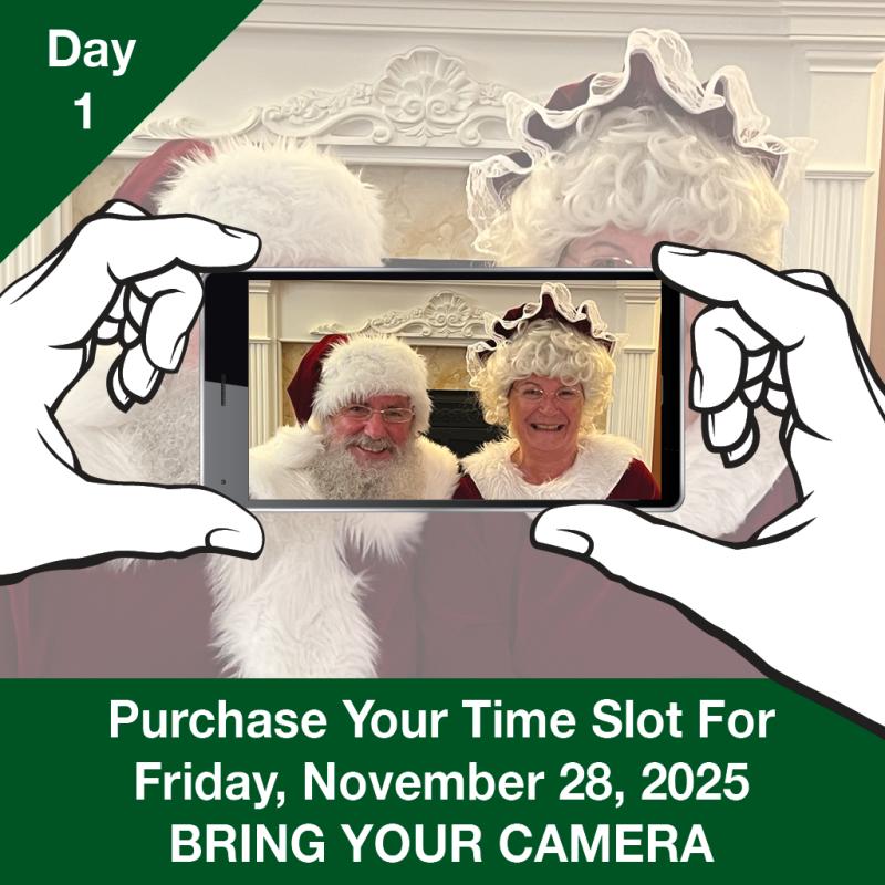 You must present your digital or paper receipt showing proof of your “Santa Visit” session purchase when checking in for your designated time slot.