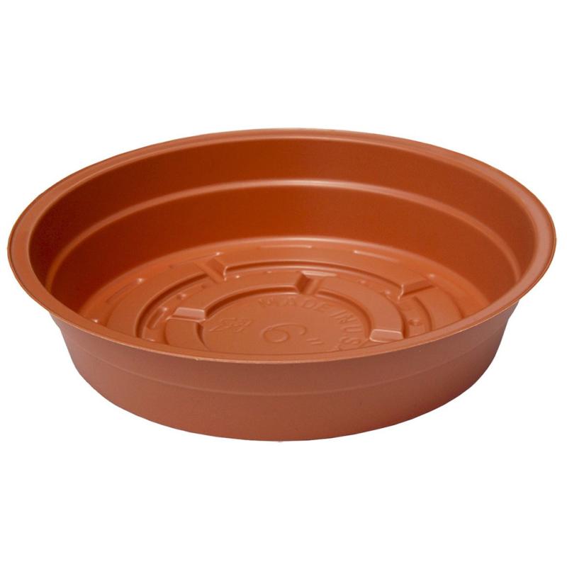 | Curtis Wagner Plastics Terracotta Vinyl Plant Saucer. Keep your floors and surfaces spotless with these extra-strong, heavy-gauge, footed vinyl saucers. Designed to protect carpets, hardwood, and tile from excess water and soil, their durable construction ensures long-lasting use while maintaining a clean, terracotta-inspired look that complements any planter. |